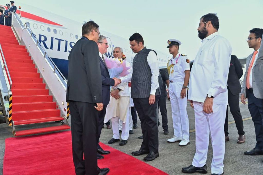 Prime Minister Starmer was welcomed by Maharashtra and Gujarat Governor Acharya Devvrat and Maharashtra Chief Minister Devendra Fadnavis.
