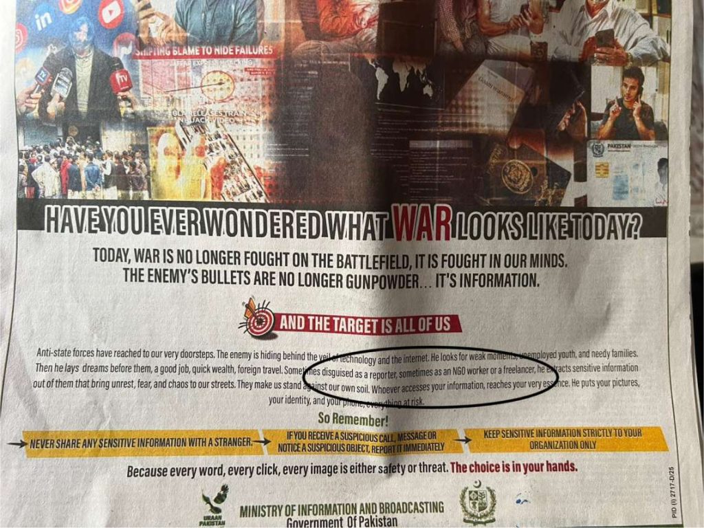 “Framing civil society actors and independent media as part of an information war is deeply irresponsible and undermines the very freedoms that sustain a democratic society. Independent journalists and NGOs in Pakistan already operate under highly restrictive conditions: frequent harassment, onerous registration and reporting requirements, arbitrary scrutiny of funding, and a climate of suspicion fostered by vague security narratives,” read a joint statement issued by the group.